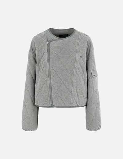 MF round neck, diagonal placket, diamond quilted, versatile floral gray cotton coat