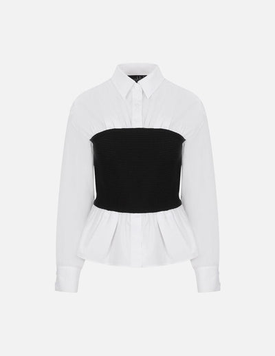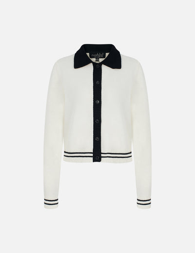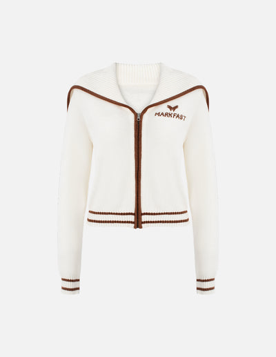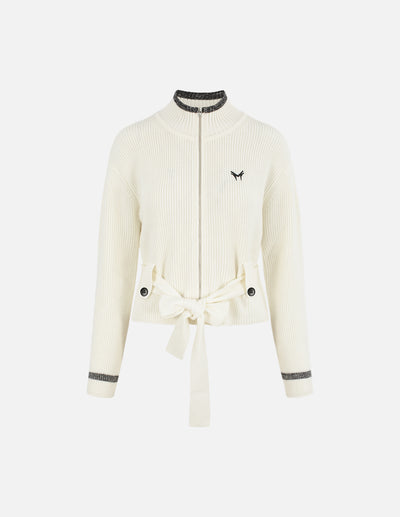 MF Ribbed Stand Collar White Tie-Waist Cardigan