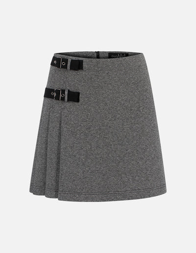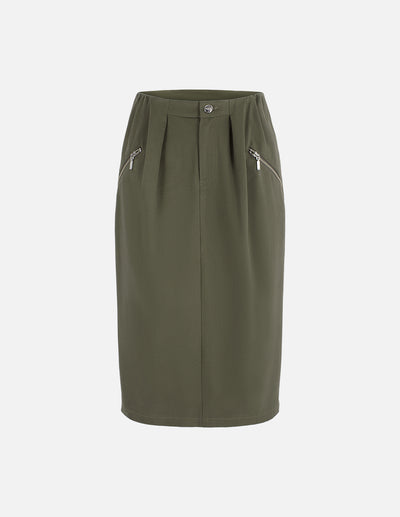 MF Retro Grey Olive Green Loose Straight Fit Pleated Design Versatile Midi Skirt