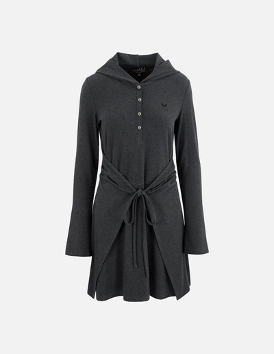 MF Hooded, Flared Design Dark Gray A-line Long Dress