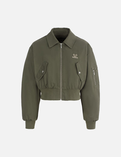 MF Retro Grey Olive Green Lapel Flight Jacket Short Cotton Jacket