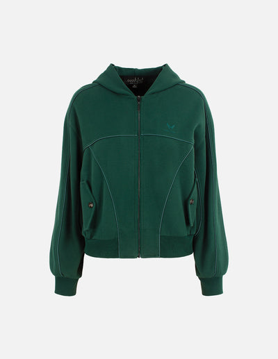 MF Deep Sea Green Loose Ribbed Ruffled Hooded Zipper Sweatshirt