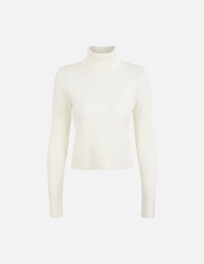 MF Premium White Versatile Turtleneck Ribbed Knit Pullover