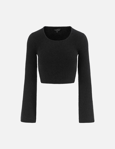 MF Deep Round Neck Design High Waist Flared Sleeve Ribbed Knit Pullover