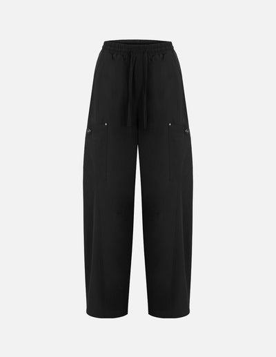 MF Elastic Drawstring Waistband Loose Fit Slimming Black Straight Leg Pants
