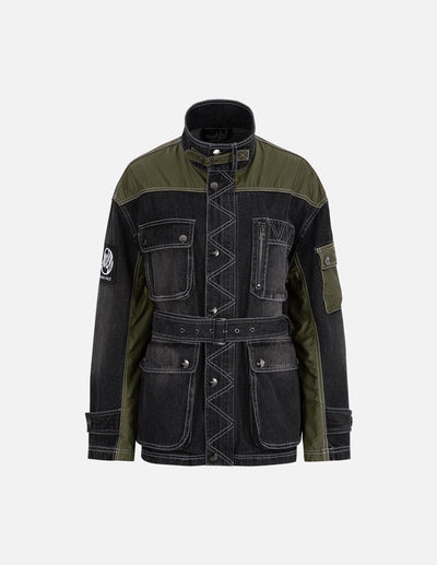 MF stand-up collar loose workwear style hooded zip-up jacket