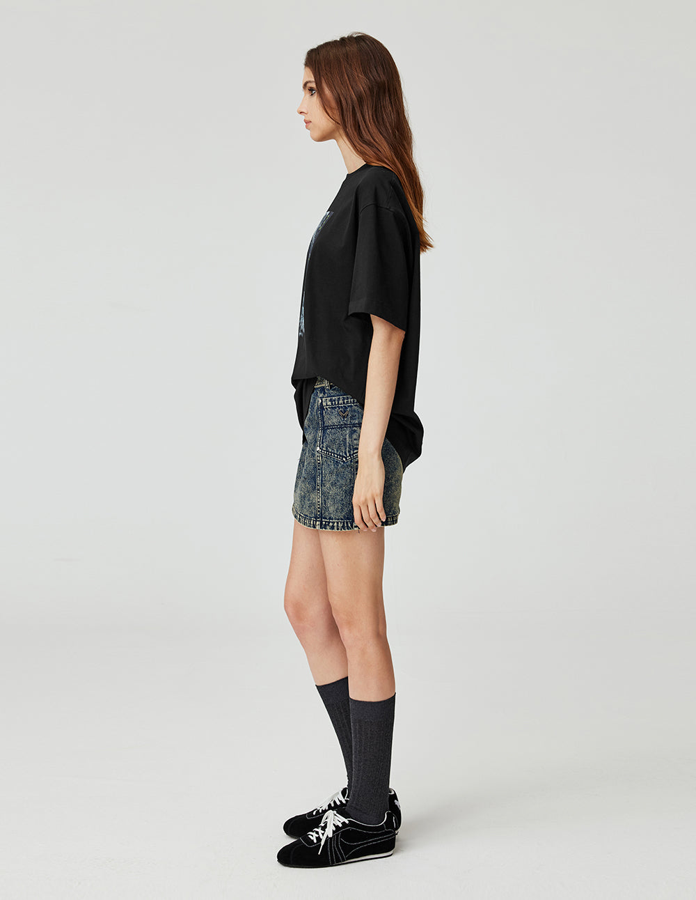 MF Threaded Small Round Neck Film Monster Print Loose Cotton T-Shirt