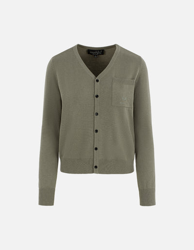 MF versatile loose light gray khaki V-neck knitted cardigan
