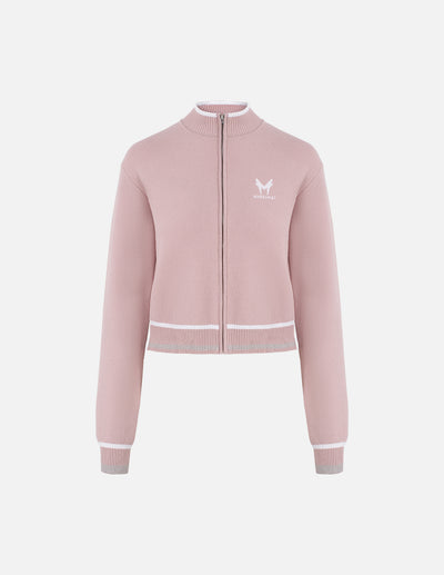 MF comfortable and versatile stand-up collar striped contrast color monster loose elastic ribbed knitted cardigan