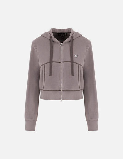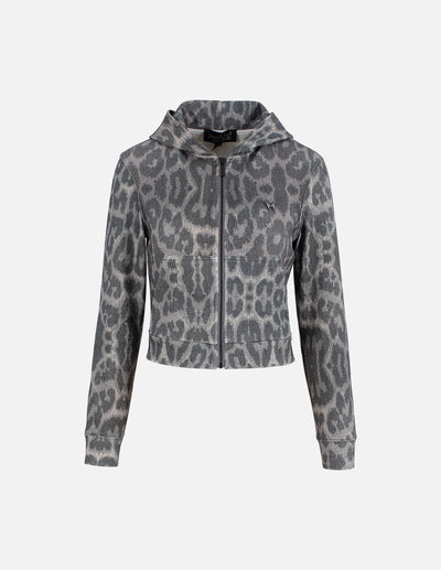 MF vintage grey leopard print hooded zip-up jacket