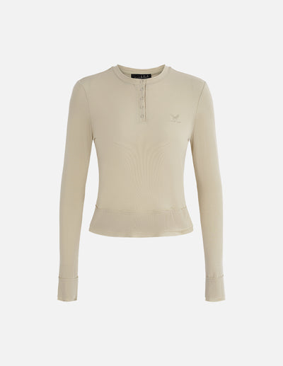 MF all-match apricot round neck monster comfortable stretch top