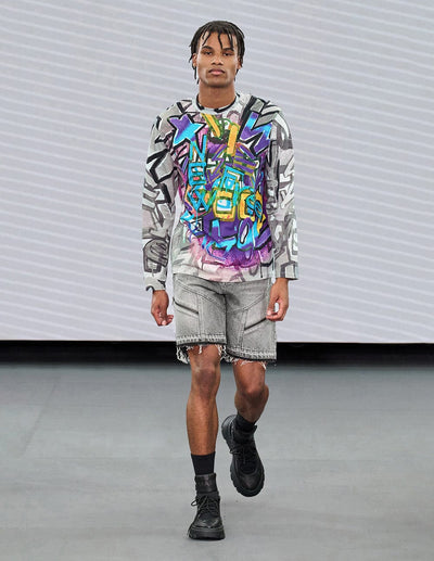 Couple Style Patchwork Graffiti Knitted Sweatshirt