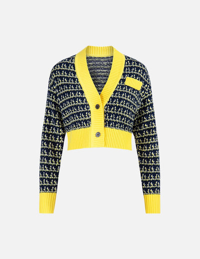 Women's Blue And Green Checkerboard Knit Sweater