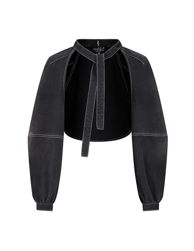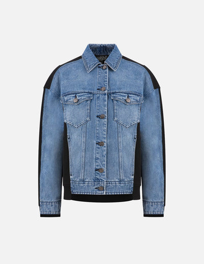Women Mf Passion Flamingo Contrast Color Washed Denim Jacket