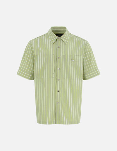 Men Mf Logo Embroidery Washed Denim Short Sleeve Shirt