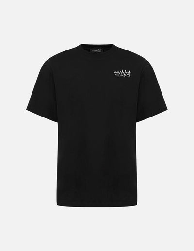 High-precision long-staple cotton combs out shorter fibers and removes impurities in cotton, moisture absorption and breathability, soft and comfortable. Simple round neck The cut is clean and concise, easy to match. Seasonal short sleeves are versatile and practical. The graffiti print on the back creates an unruly youthful look.