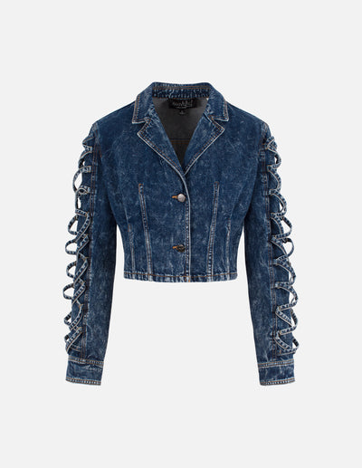 MF Ribbed Stand Collar White Tie-Waist Cardigan