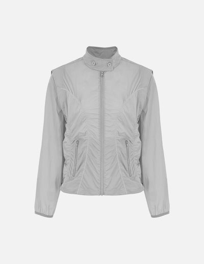 MF Collared Zipper Versatile Floral Gray Gathered Slim Waist Cropped Top