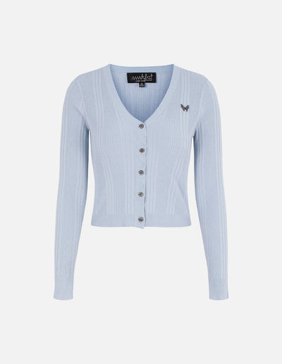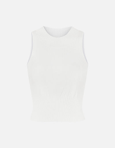 MF Ribbed Stand Collar White Tie-Waist Cardigan